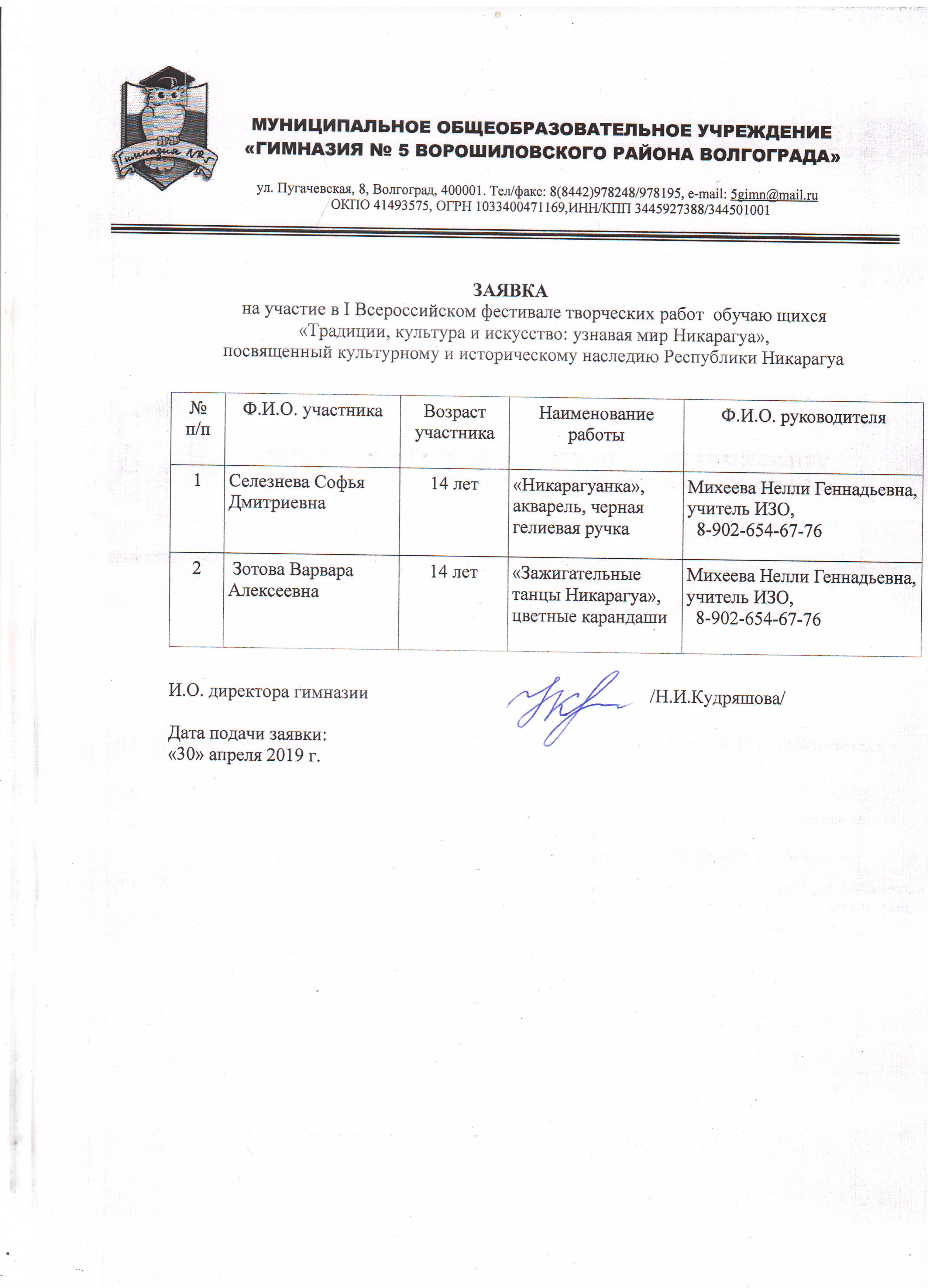Заявка для участия
