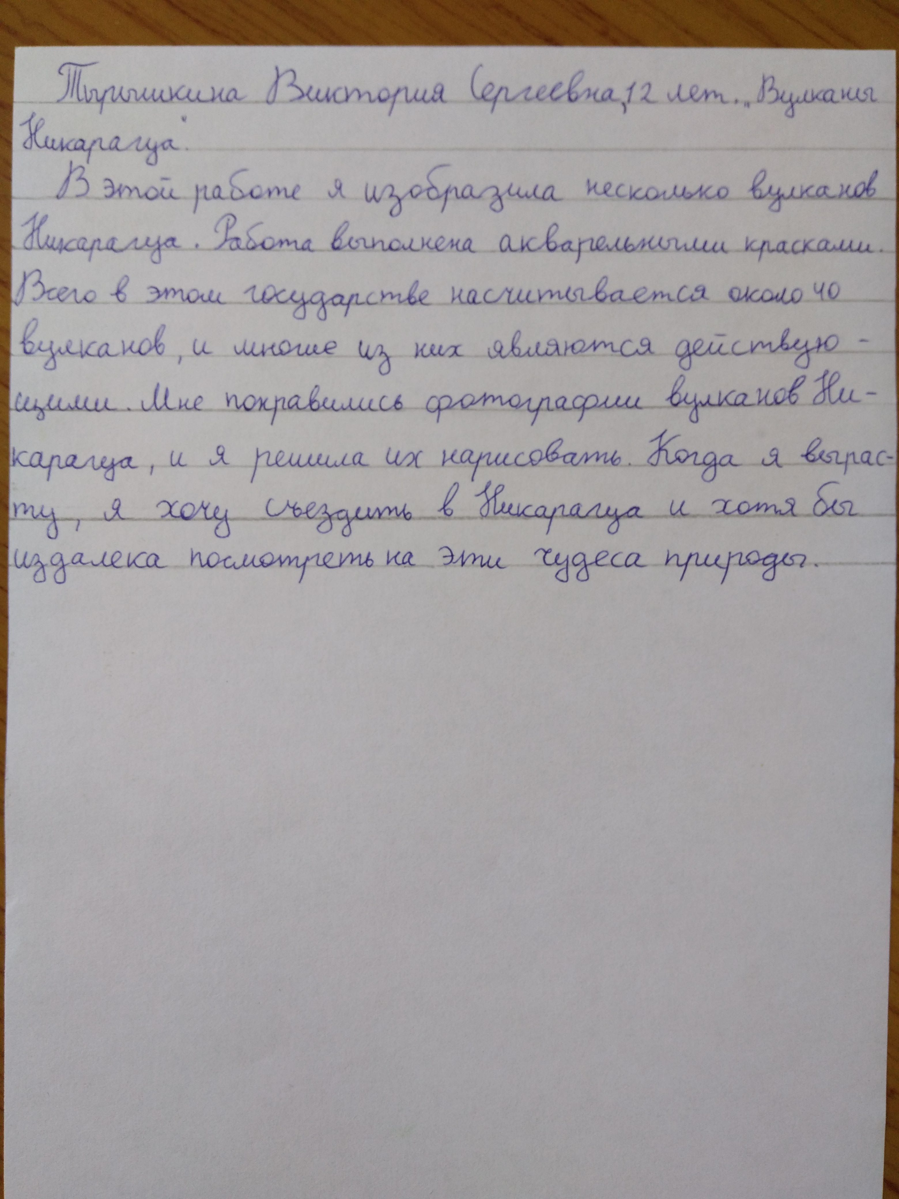 Тырышкина Виктория, 12 лет, 30.11.2006 г.р. "Вулканы Никарагуа"