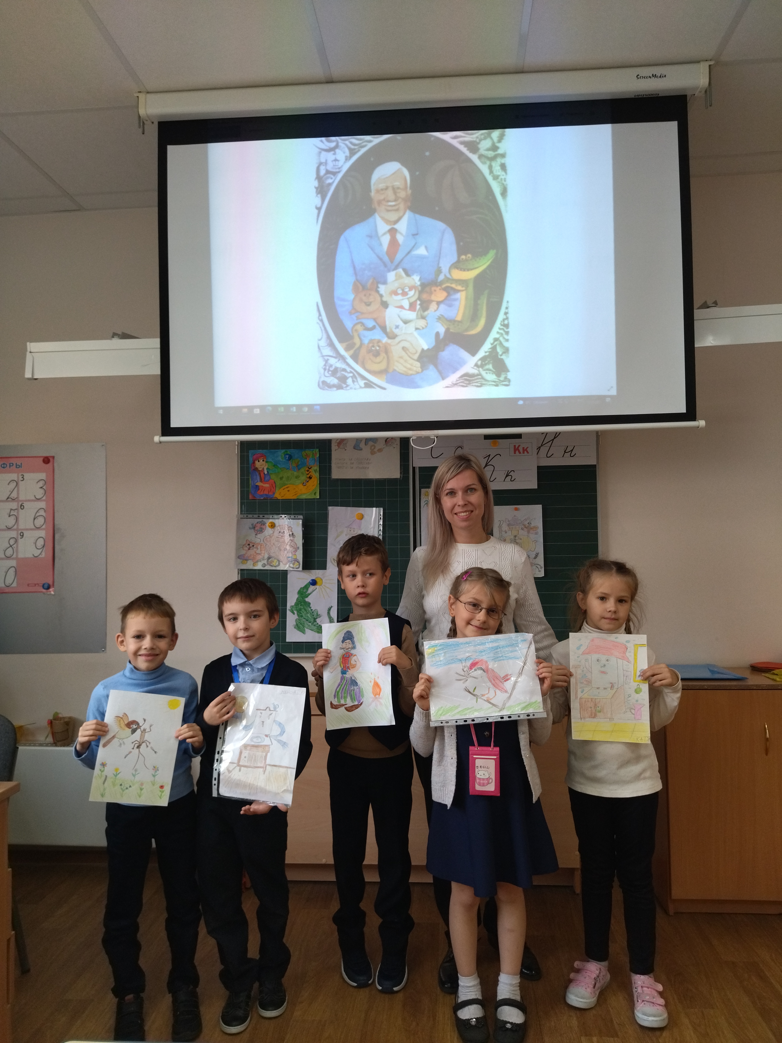 Учитель МОУ СОШ #4 г. Всеволожска провела классный час для детей 1 класса "Добрый мир сказок К. И. Чуковского". Было рассказано о детском писателе К. И. Чуковском, прочитаны учителем его произведния, проведена викторина.